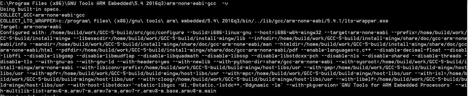 安装完成后,可以通过arm-none-eabi-gcc -v 查看环境变量是否生效。