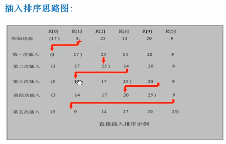 - 从头到尾依次扫描未排序序列,将扫描到的每个元素插入有序序列的适当位置。(如果待插入的元素与有序序列中的某个元素相等,则将待插入元素插入到相等元素的后面。
