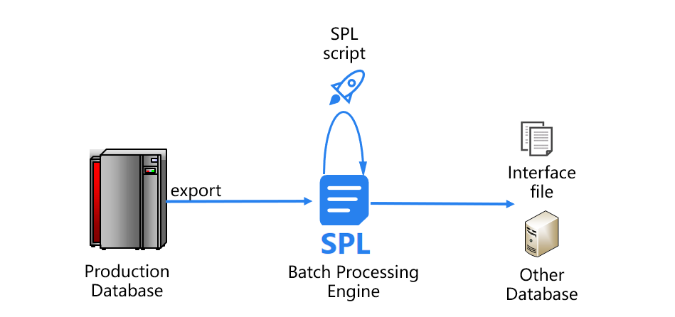首先来看数据的入库、出库问题。SPL可以直接基于生产库导出的文件计算,不必再将数据导入到关系数据库中。完成跑批计算后,SPL还能将最终结果直接存储成文本文件等通用格式,传递给其他应用系统,避免了原有跑批数据库的出库操作。这样一来,SPL就省去了关系数据库缓慢的入库、出库过程。