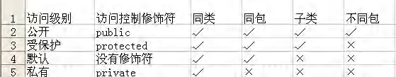 //细节2:只有默认和public才能修饰类 public class Sds { public int i = 1; //公共 protected int n = 2;//受保护的 int o = 3;//默认的 private int p = 4;//私有的 public void show(){ //方法和属性的访问修饰符是一样的 System.out.println("我是方法show"); } } //细节2:只有默认和public才能修饰类 class King{ }