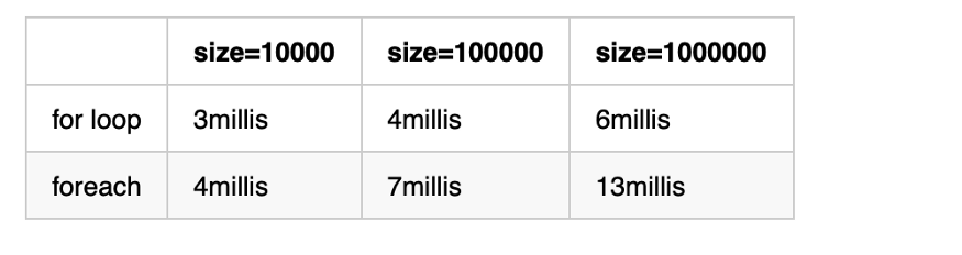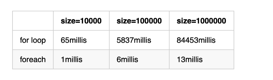 System.out.println("ArrayList foreach traversal cost: "+ arrayListForeachCost);