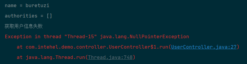 配置完成后,启动项目,登录成功后,访问/user接口,控制台就会打印出登录用户信息, 当然,由于我们目前没有给用户配置角色,所以默认的用户角色为空数组,如图2-12所示。