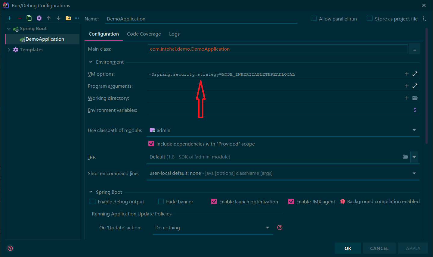 - MODE_THREADLOCAL: 这种存放策略是将 SecurityContext 存放在 ThreadLocal 中,大家知道ThreadLocal的特点是在哪个线程中存储就要在哪个线程中读取,这其实非常适合Web应用,因为在默认情况下,一个请求无论经过多少Filter到达Servlet都是由一个线程来处理的,这也是SecurityContextHolder的默认存储策略,这种存储策略意味着如果在具体的业务处理代码中,开启了子线程,在子线程中去获取登录用户数据,就会获取不到。