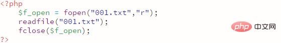 readfile()函数,用于读入一个文件并将其写入到输出缓冲,如果出现错误则返回false。