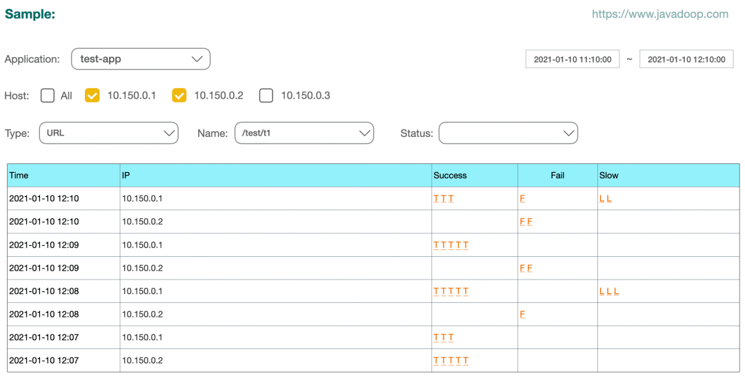 我们也是按照分钟来采样,最终每分钟,对每个 type、name、status 的不同组合,采集最多 5 个成功、5 个失败、5 个慢处理。