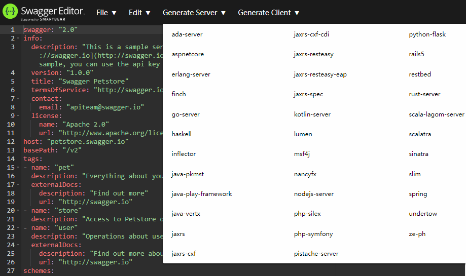 类似Swagger工具一样,完成的对象建模本身也可以直接导出不同语言,不同开发框架下的客户端消费框架,服务端提供框架代码。