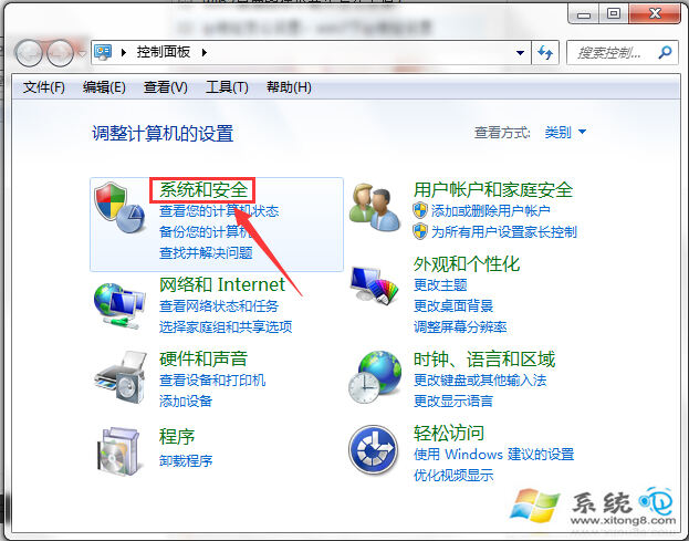 2、进入“控制面板”对话框后,单击“系统和安全”;