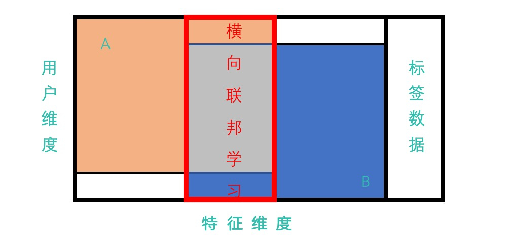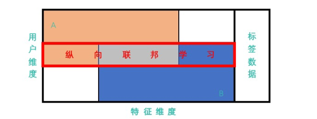 例如:同一地区的商场与银行,它们的用户群体很有可能包含该地的大部分居民,用户的交集可能较大;由于银行记录的都是用户的收支行为与信用评级,而商场则保有用户的购买历史,因此它们的用户特征交集较小;这种场景就比较适合使用 纵向联邦 用于增加模型训练的特征数量 扩展模型能力。