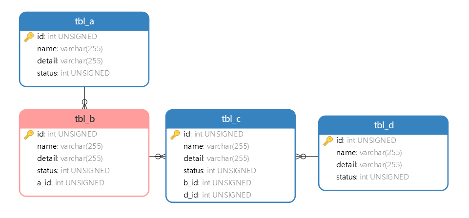 根据restful接口风格,我们最终会落到一个实体上,示例按照b表。其他表同理。