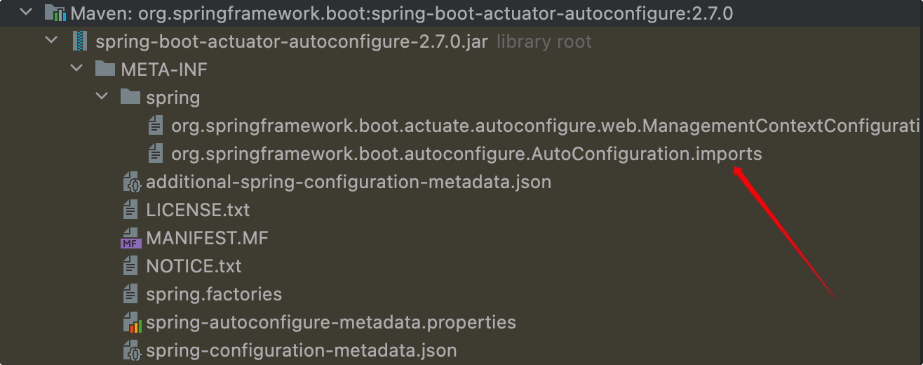另外格式也变了,Spring Boot 2.7 中直接每一行是一个自动配置类: