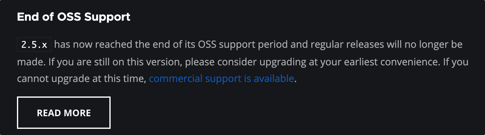 | 2.5.x | 2021-05-20 | 已停止 | 2023-08-24 |