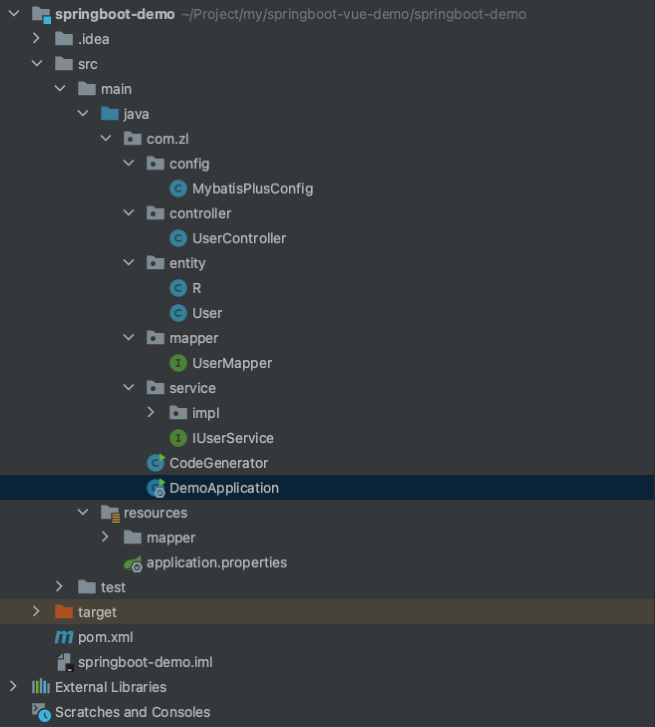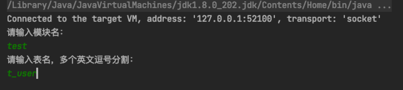 * 演示例子,执行 main 方法控制台输入模块表名回车自动生成对应项目目录中