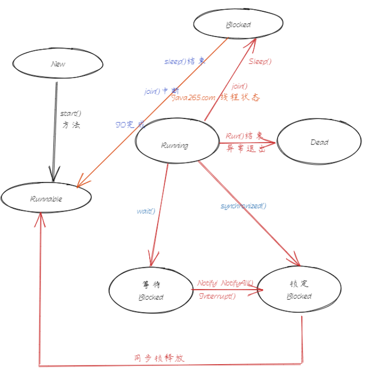 或发出了I/O请求时,JVM会把该线程置为阻塞状态