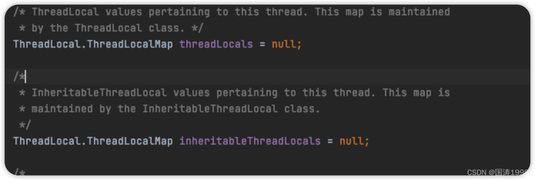 当inheritThreadLocals的值为true并且其父线程的inheritableThreadLocals不为null时, 把其父线程inheritableThreadLocals 赋值给当前线程的inheritableThreadLocals