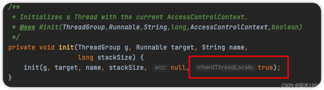 其构造方法调用了init方法, init方法把inheritThreadLocals值设置为了true