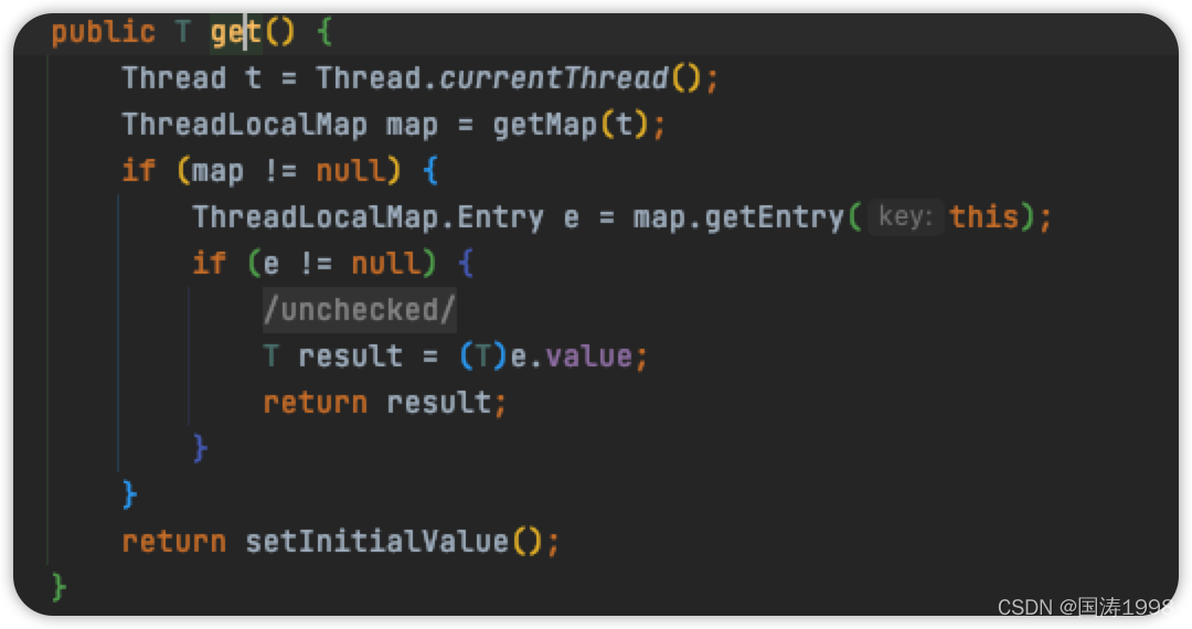 get()方法没什么好看的,就是ThreadLocal的get()方法。